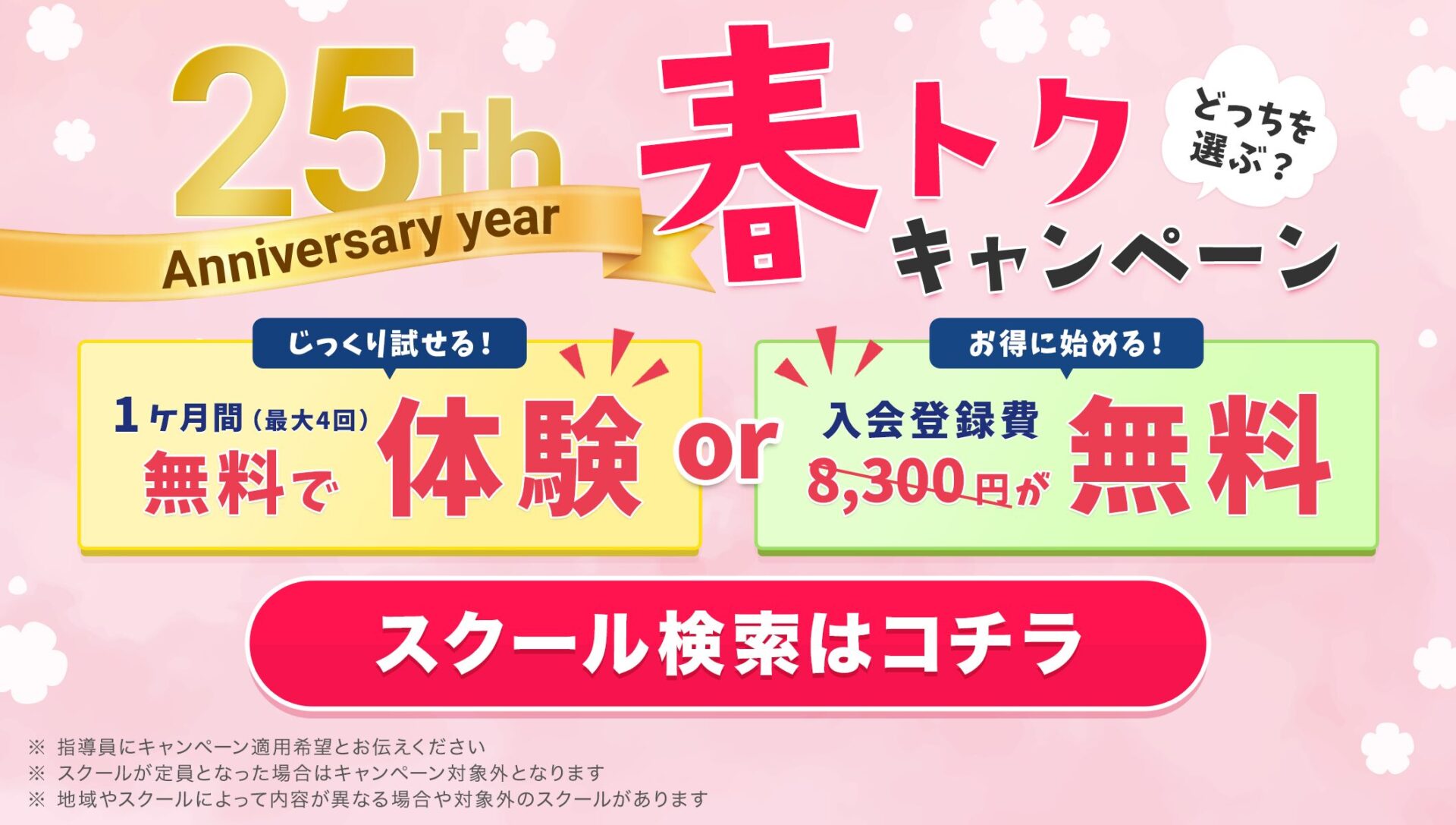 ※各スクールの定員に達し次第、受付を終了させていただく場合がございます